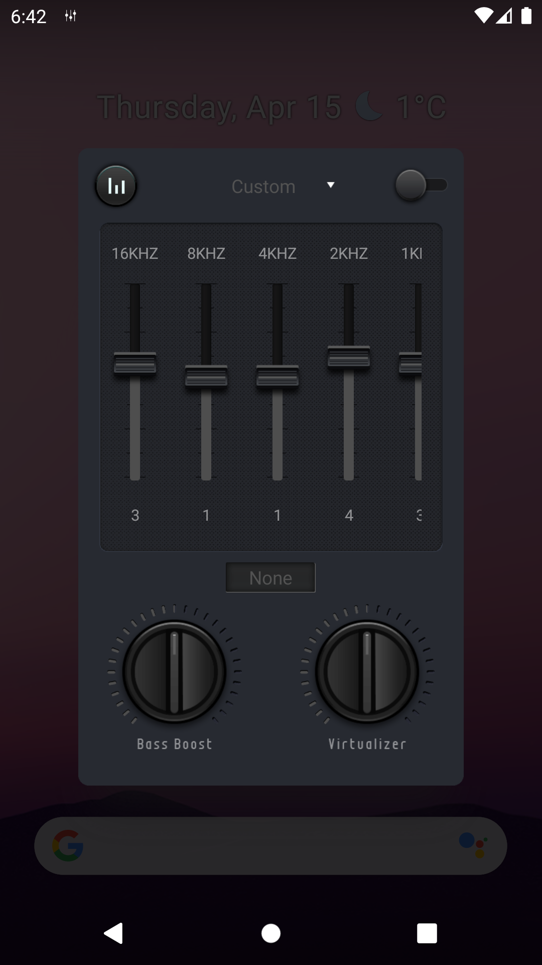 One strange thing to notice: it has the same basic theme elements as #5 Equalizer & Bass Boost. We can't tell who copied whom (most probably Ijoysoft borrowed from Coocent given the 2 apps’ launch dates), but it's very efficient and intuitive.